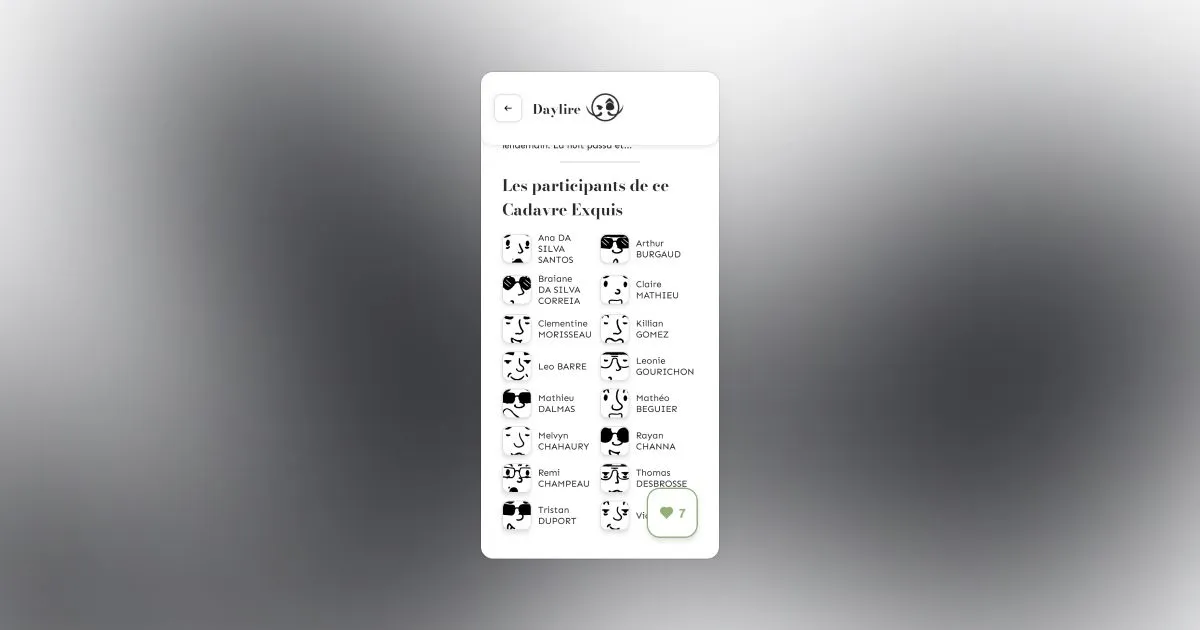 Daylire - une application mobile pour consulter les cadavres exquis provenant de Loufok