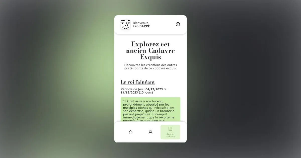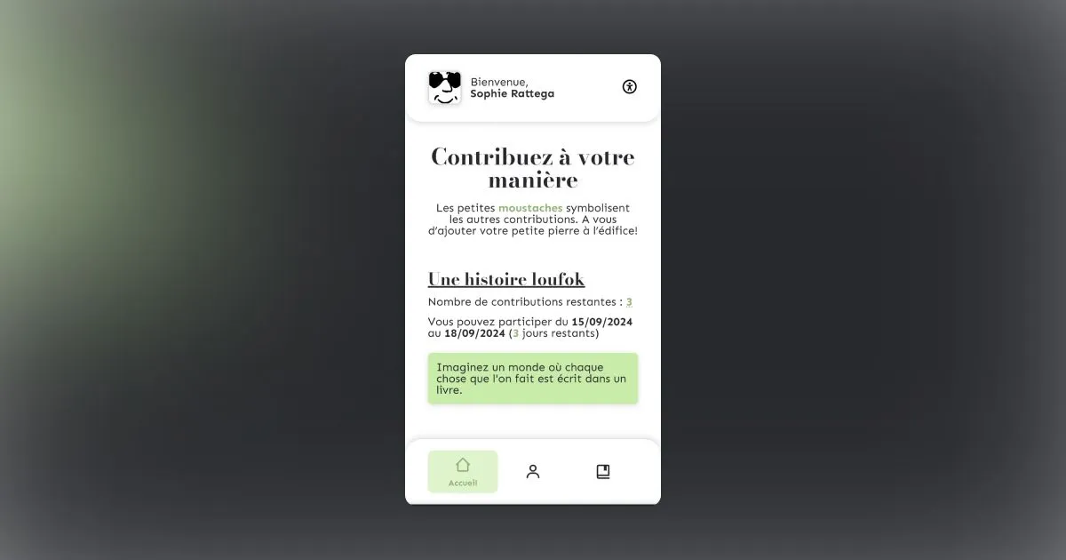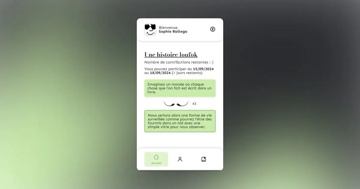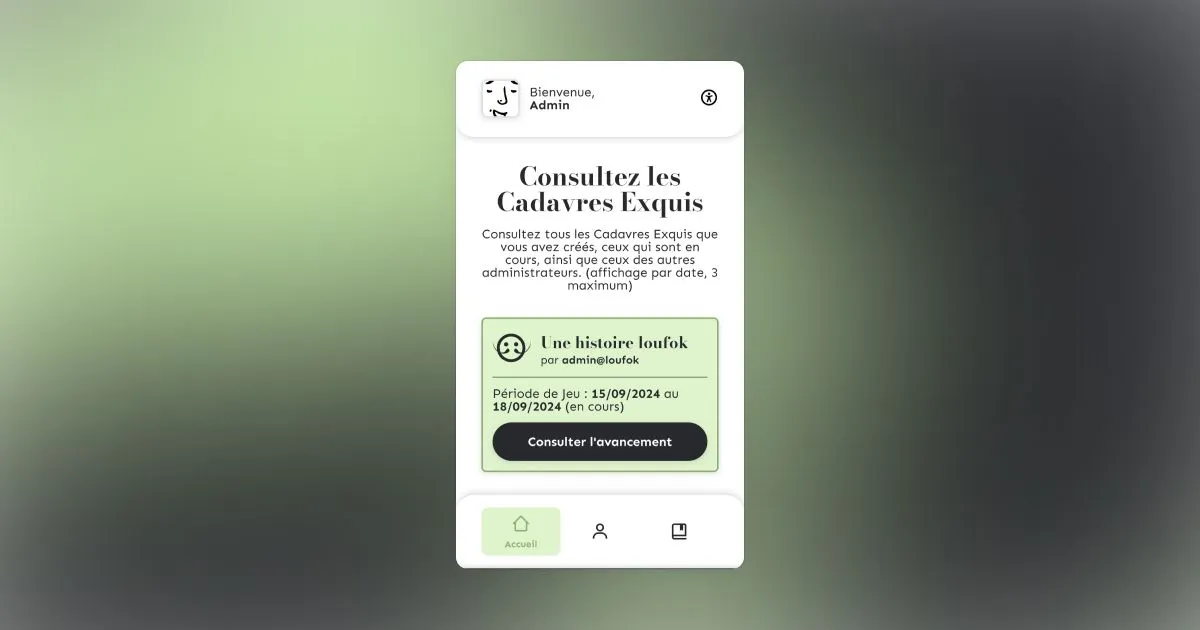Loufok est une application web offrant la possibilité aux utilisateurs de créer des histoires collaboratives et uniques, basées sur le principe du Cadavre Exquis. Les utilisateurs peuvent contribuer à des cadavres exquis sur divers thèmes, pendant une période définie. Une contribution aléatoire leur est attribuée, et ils doivent continuer l'histoire. Une fois terminés, les cadavres exquis sont consultables, aboutissant à des histoires "loufok" et imprévisibles. Ce projet a été développé lors de notre premier semestre de troisième année de BUT MMI (Métiers du Multimédia et de l'Internet). La demande émanait d'une association souhaitant créer une communauté littéraire autour du principe du Cadavre Exquis. Le but est de continuer une histoire sans voir les contributions précédentes ni celles à venir, afin de garantir une histoire authentique et surprenante. Autour de cette application, plusieurs annexes ont été créées, notamment la documentation pour la partie backend de l'application, ainsi qu'une application mobile nommée Daylire, permettant de consulter toutes les histoires terminées. L'application comporte deux parties, avec des fonctionnalités partagées mais aussi dédiées. Pour la partie utilisateur, ils peuvent participer à un cadavre exquis en cours et voir le nombre de contributions affiché au fur et à mesure. Ils peuvent également consulter leur profil avec des statistiques et leurs dernières contributions. Enfin, ils ont la possibilité d'explorer le dernier cadavre exquis auquel ils ont participé. Pour la partie administrateur, ils peuvent consulter les cadavres exquis créés ou en cours, ainsi que l'avancement de chacun. Ils ont également la possibilité de créer autant de cadavres exquis qu'ils le souhaitent, bien que plusieurs cadavres exquis ne puissent pas se chevaucher. L'application repose sur un framework PHP MVC (Mosaic), développé par Maxence, mon acolyte pour ce projet, ainsi qu'une base de données SQL. Tout le design a été réalisé avec Figma, et un effort particulier a été consacré à l'accessibilité pour rendre l'application utilisable par tous, notamment à travers la création d'un menu avec divers outils destinés à faciliter l'expérience des utilisateurs.